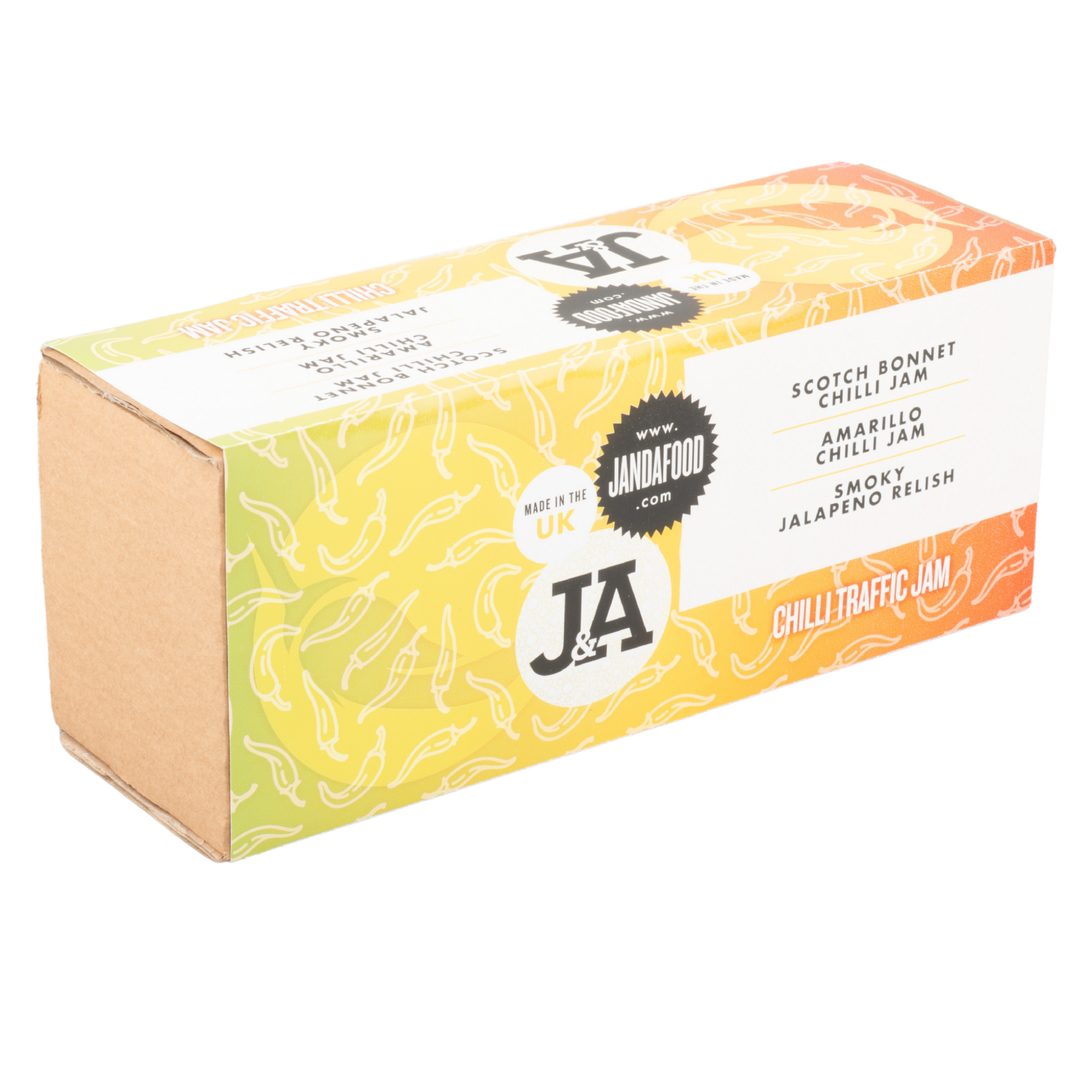 Ready to turn up the heat? Our Traffic Chilli Jam Gift Box is a flavour-packed journey through three levels of spice, beautifully boxed and ready to gift (or keep for yourself). Featuring Smoky Jalapeño Relish (mild), Amarillo Chilli Jam (medium), and Scotch Bonnet Chilli Jam (hot), this trio is crafted for those who crave bold, spicy, and sweet-savoury flavour combinations.